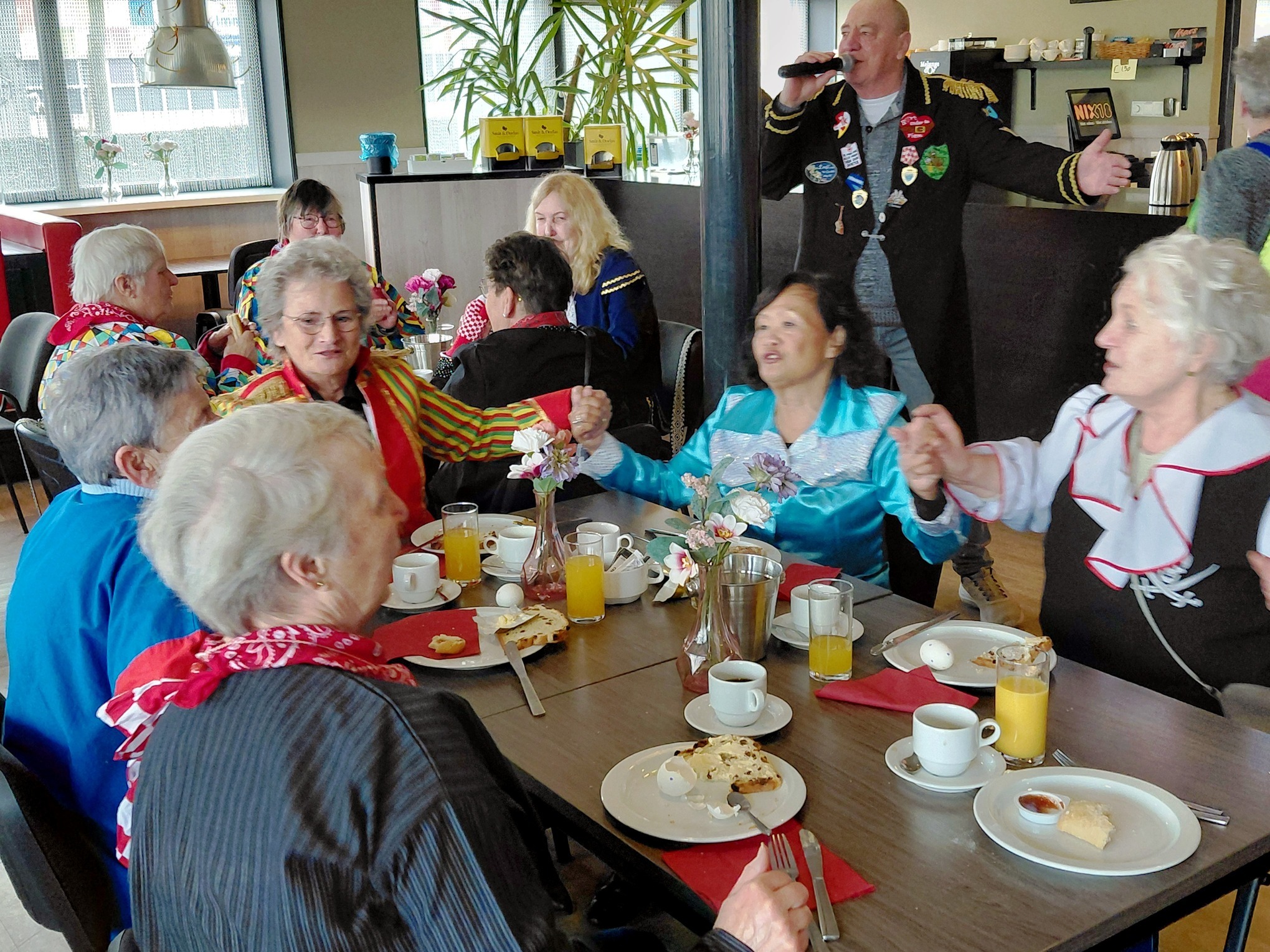 De burgemeester was ook aanwezig, samen met DJ Harry. Om 11.00 uur kwam c.v. De Tuuters ons een bezoek brengen met ook de dansgarde.