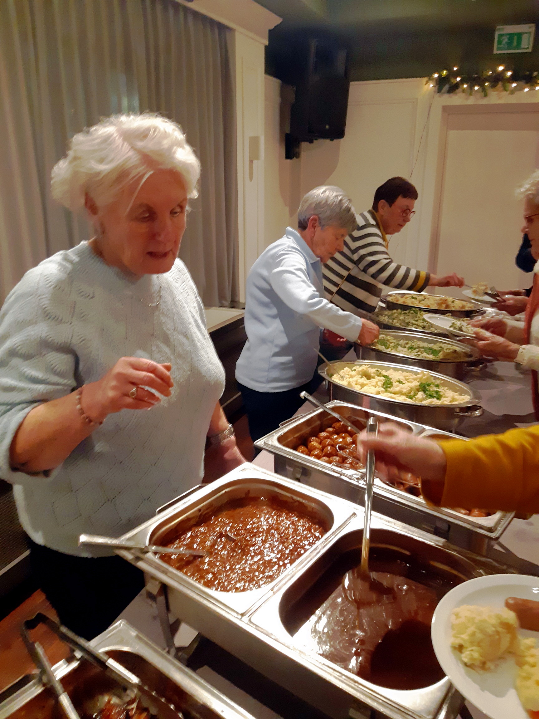Na de pubquiz was er ons inmiddels bekende stamppottenbuffet. Deze keer ook weer in het Prinsenhof. Er was keuze uit vier soorten stamppot: hutspot, andijvie, boerenkool en zuurkool-stamppot en drie soorten vlees en natuurlijk jus met of zonder spekjes. Na een kopje koffie/thee is iedereen weer met een volle maag en hopelijk een goed gevoel naar huis gegaan. Dit is zeker een activiteit die wij bij de Senioren 50+ Best ieder jaar willen organiseren. Met dank voor de helpende hand van de Golden Girls.